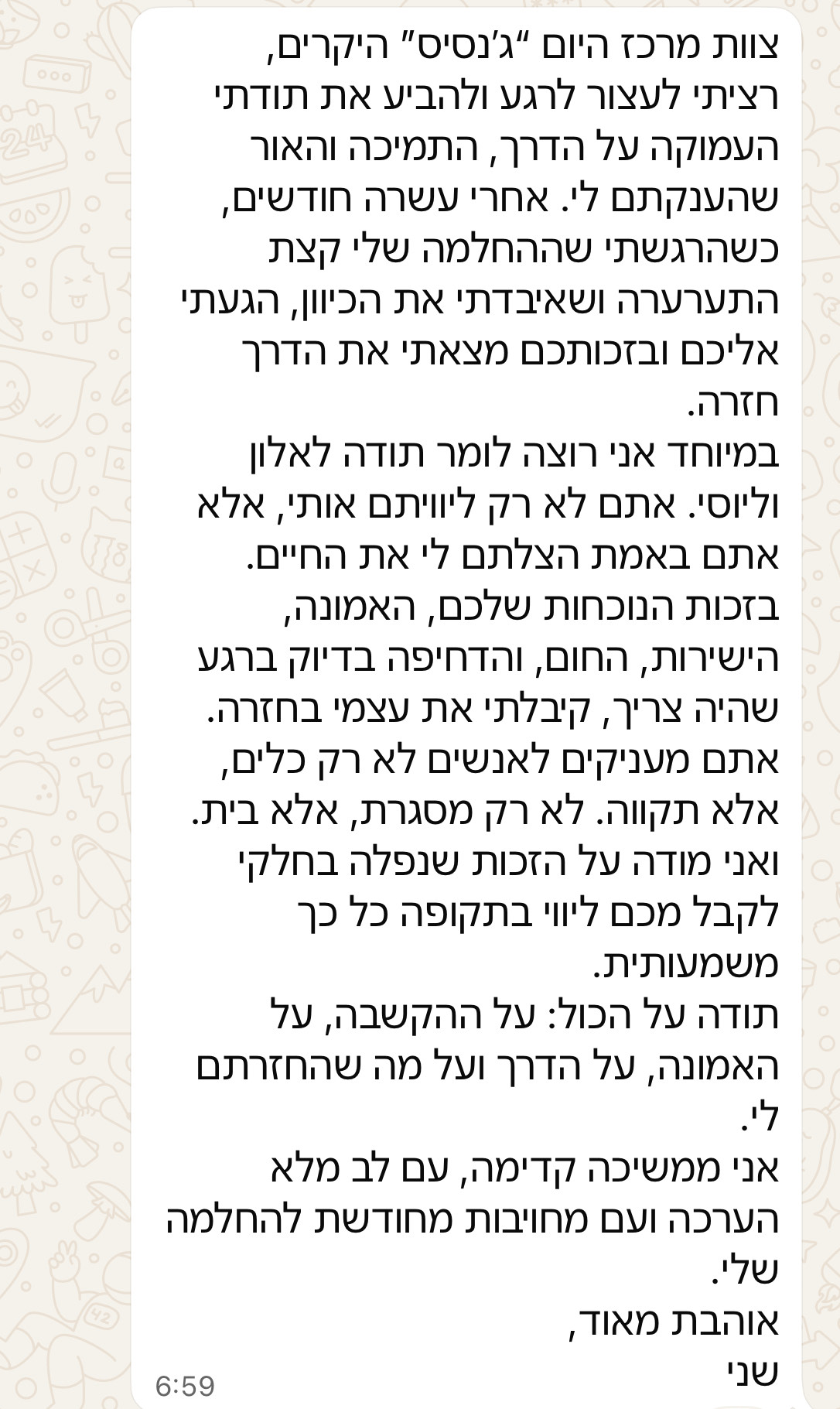 אצלנו כל אחד זוכה ליחס אישי אכפתי וחם.